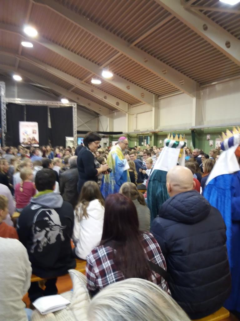 Eine kleine Runde der Frohnleitner Sternsinger nahm am Samstag, dem 13. Jänner beim Treffen der steirischen Sternsinger in Bad Gleichenberg teil. Mit großer Erwartung feierten wir die Heilige Messe, geleitet von Bischof Willi Krautwaschl und vielen Kozelebranten, darunter auch unserem Pater Simon. Lebhaften Eindruck machte die Vorführung des Bischofs, wie Frauen in Tansania und Uganda ihre Freude lautstark artikulieren. Theatervorführung, Kinderanimation mit guter Musik und die schon traditionelle Würsteljause rundeten das Ganze ab.